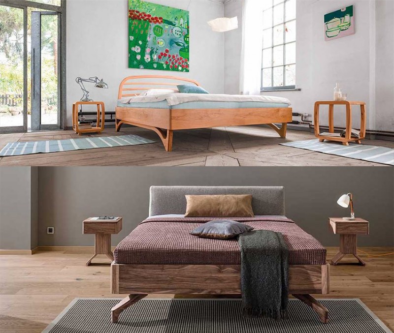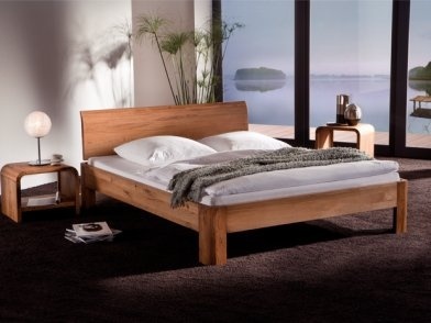 Spezielle Vollholzbetten ohne Metall- und Kunststoffteile in allen möglichen Holzarten und Beizfarben.